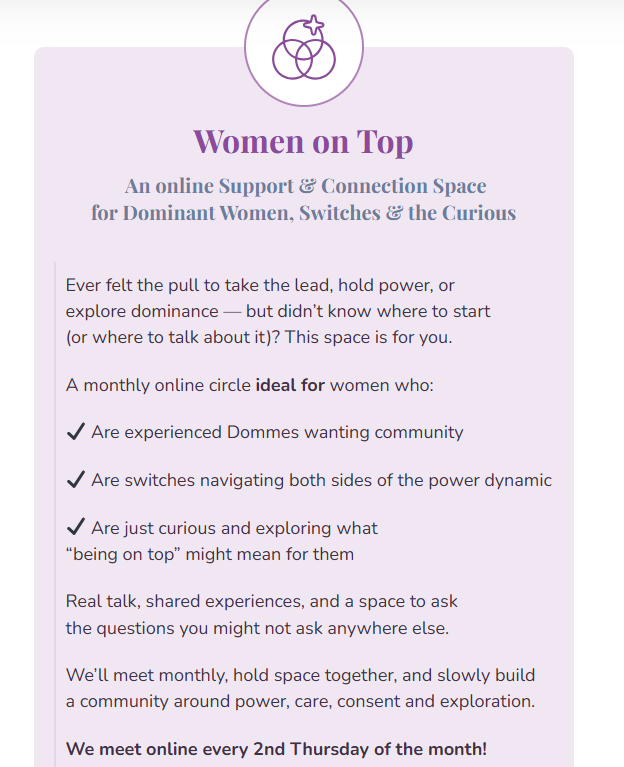 Women on Top An online Support & Connection Space for Dominant Women, Switches & the Curious