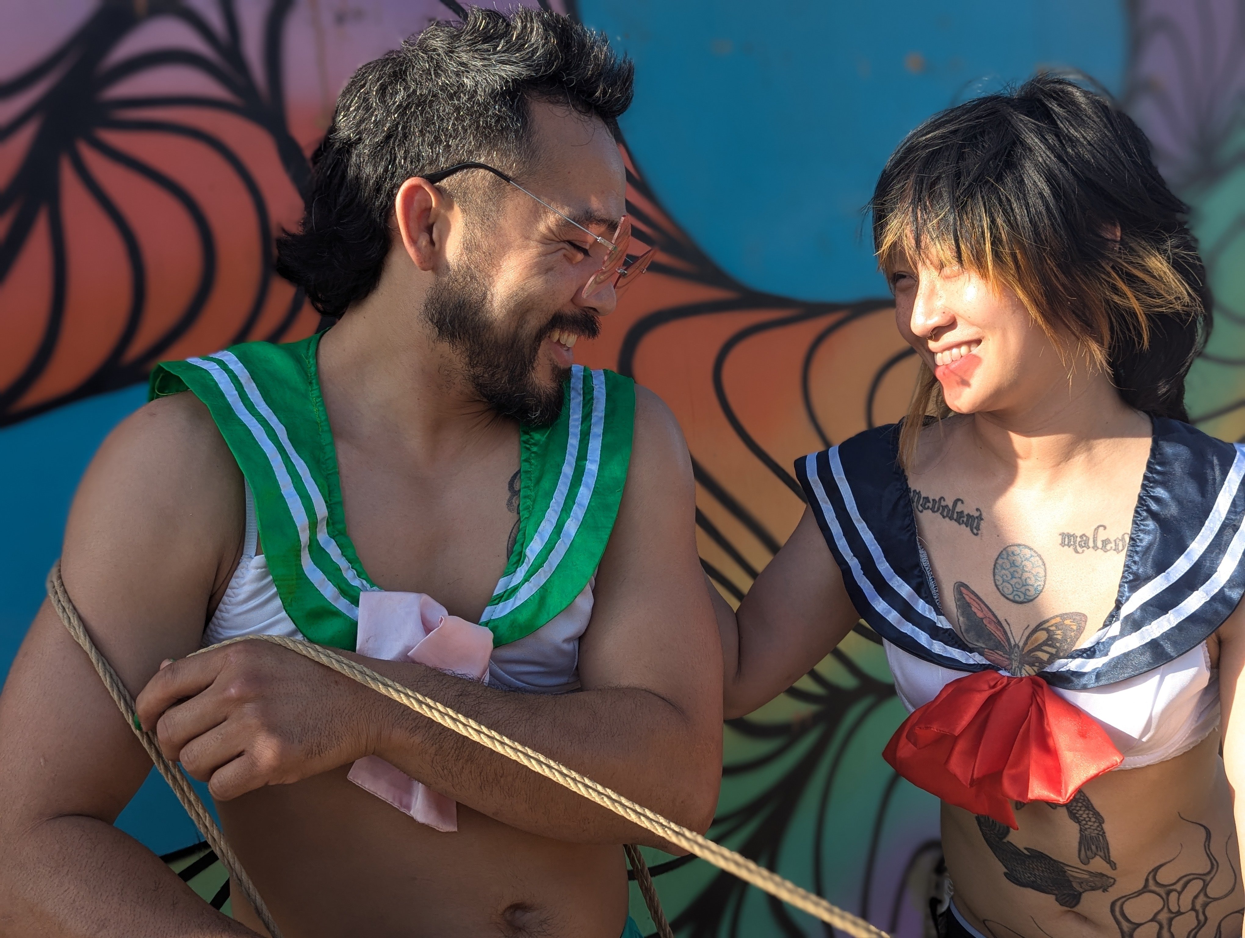 Experience & education Kemo draws on their passion for rope and kink to create personalized experiences for the people they connect with. They have been studying rope for 8+ years and consider themself a perpetual student of rope, on top of being an educator. Kemo first took classes locally in the greater Los Angeles area, and later invested in 1-on-1 instruction from leaders in the craft. Today they continue their rope education by frequenting intensives and occasional private lessons, while remaining active in the local rope scene. Kemo can often be found attending rope and kink events, munches and jams. Rope artist & teacher An acclaimed performer, Kemo Burns has showcased their tying skills and participated in panels and interviews on stages across the country. Some notable events include Lightning in a Bottle, The Laugh Factory, Burning Man, DomCon LA & NOLA, multiple sexual health/BDSM summits and countless kinky play parties. Along with their annual workshops at LIB and the Burn, Kemo was a resident rope bondage instructor at Kink Collective OC in Santa Ana, CA throughout 2024. Today they can be found teaching pop-up workshops on topics such as negotiating a rope scene, arms-free harnesses, and rope for couples at local dungeons and collectives. Testimonials: “Loved the perfect mix of sadism & sensuality… I really appreciated how when I needed an adjustment, you took care of that right away. Being able to attend to the adjustments while also being able to still keep the scene going meant a lot to me… I loved how challenging this was and how communicative you were, both with verbal play & check-ins! Overall, super naturally flowing scene… at a great pace. I'm so excited for more." “You always give me unforgettable experiences in rope. Your skill, knowledge and unique creativity lead to the hottest and most satisfying scenes. Your care, attentiveness and willingness to adapt to the present moment help build beautiful spaces. Our ties are connective and personal... mixing pain and pleasure in the most delicious ways... leaving me wanting more.” “All the ties we did were lovely... it was easier for me to surrender than [the] few other ties that I've done before... I think that's overall due to the atmosphere you created with your style. It's very connected and makes me feel like I can let go easier and trust you as the rope artist. I especially appreciated the consistent checking-in during the tie. And I am eager to do more ties with ya!” "I haven’t been taking the best care of my body because of depression and overwhelm and it has manifested in gaining a lot of weight... my hormones have been all over the place so my usual libido has plummeted, which is just weird for me. So it feels strange and uncomfortable in my skin... You made me forget about all that when I was in your rope and I was able to remember what it feels like to be me." "This sesh made me reflect on how a lot of my times in rope have been still - which is so lovely, but… your movement meant a lot to my masochism… I loved how not only super verbal you were but how interactive and attentive you were… creating so many different positions."