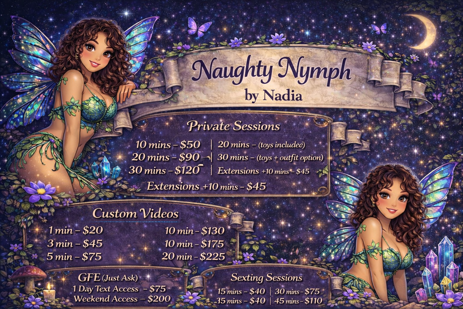 I offer video sessions for $5 a minute to have a private call. I also do 30 min of sexting for $5 a min.