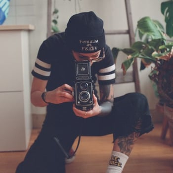 My name is Raquel (they/them) and I am an analogue photographer based in Toronto, Canada, with a specialty in documenting the eroticism of queer & trans people. Creating a comfortable & safe space for my clients is the most important, I want them to leave our sessions feeling confident & sexy.