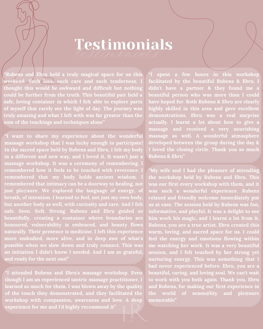 Many describe the workshop as magical, deeply safe, and profoundly transformative — a space where vulnerability, sensuality, and emotion can coexist without judgement.