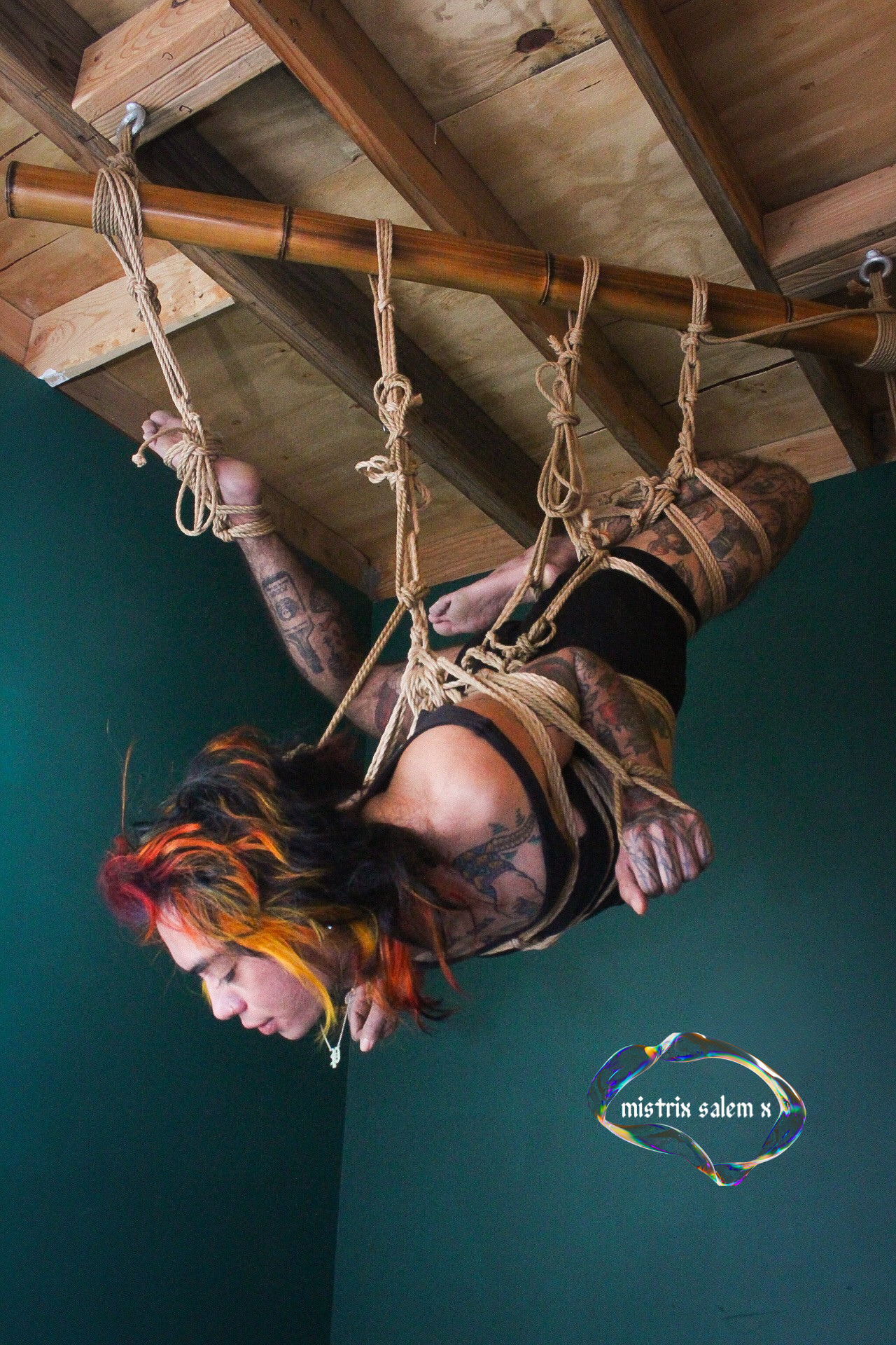 In addition to offering private rope suspension sessions, Mistrix Salem teaches rope in both classes and private/small group lessons. Their approach to rope education emphasizes risk awareness, consent, and tying in a way that feels organic and specific rather than prescribed and pattern-based. They are available to provide rope, rigging, and/or consultation for a variety of projects from editorial shoots and music videos to content collaboration with other SWers.